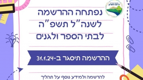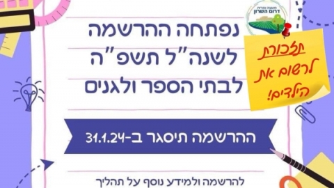 נותרו עוד יומיים להרשמה לגני הילדים, כיתות א׳ וכיתות ז׳. ההרשמה תסגר ביום רביעי 31/1.