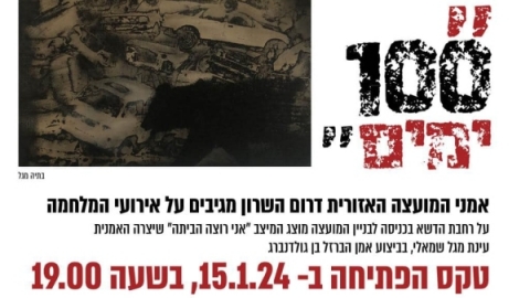 המועצה האזורית דרום השרון מצטרפת להשבתה הסמלית במשק ביום ראשון 14/1, להפגנת סולידריות עם החטופים.ות ומשפחותיהם וכדי לזכור ולהזכיר שהם עדיין שם, כבר 100 ימים.