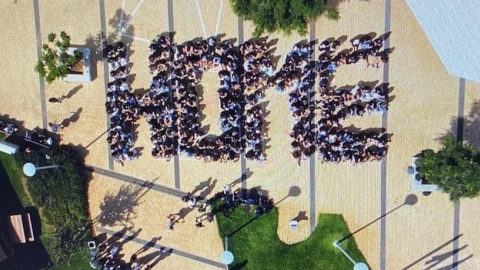 תלמידי כיתה י׳ מבית חינוך עמי אסף שבמועצה, במהלך צילומי סרטון לשחרור החטופים, שיזמה מגמת הקולנוע.