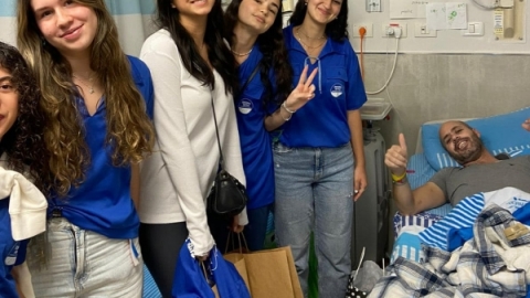בני ובנות הנוער חניכי התנועה החדשה מנווה ימין, הגיעו לבקר פצועים במרכז השיקום לנפגעי המלחמה בביה״ח תל השומר