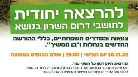 שיל דרום השרון מזמינים להרצאה יחודית בנושא צוואות, נחלות "ובן ממשיך"