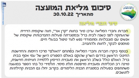 סיכום ישיבת מליאת המועצה מיום 30.10.22