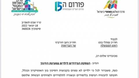 ראש המועצה אושרת גני גונן קוראת להפסקת הבידודים לתלמידי מערכת החינוך שאינם חולים
