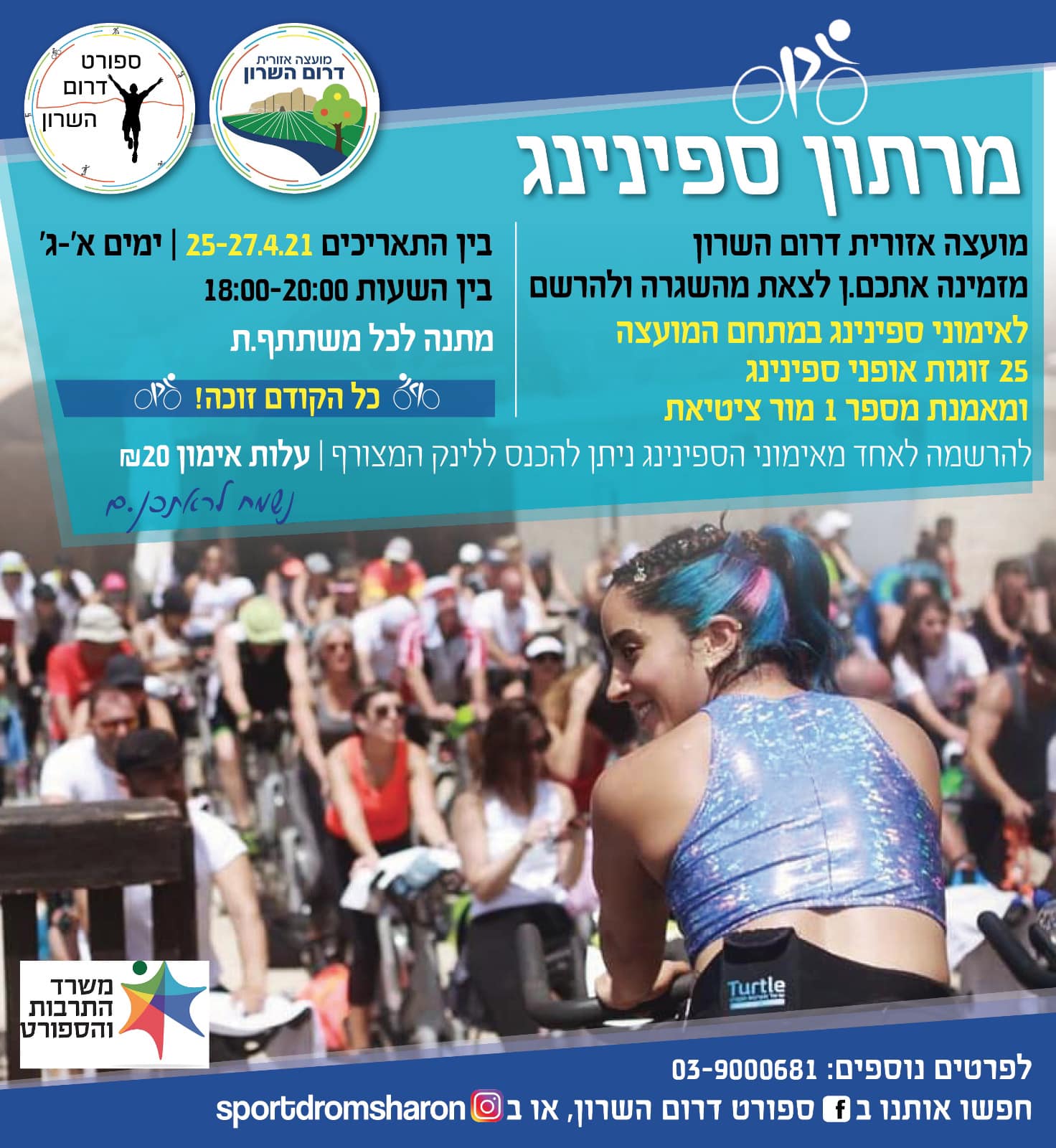 רשות הספורט דרום השרון מזמינה אתכן.ם תושבי המועצה למרתון ספינינג מטורף: