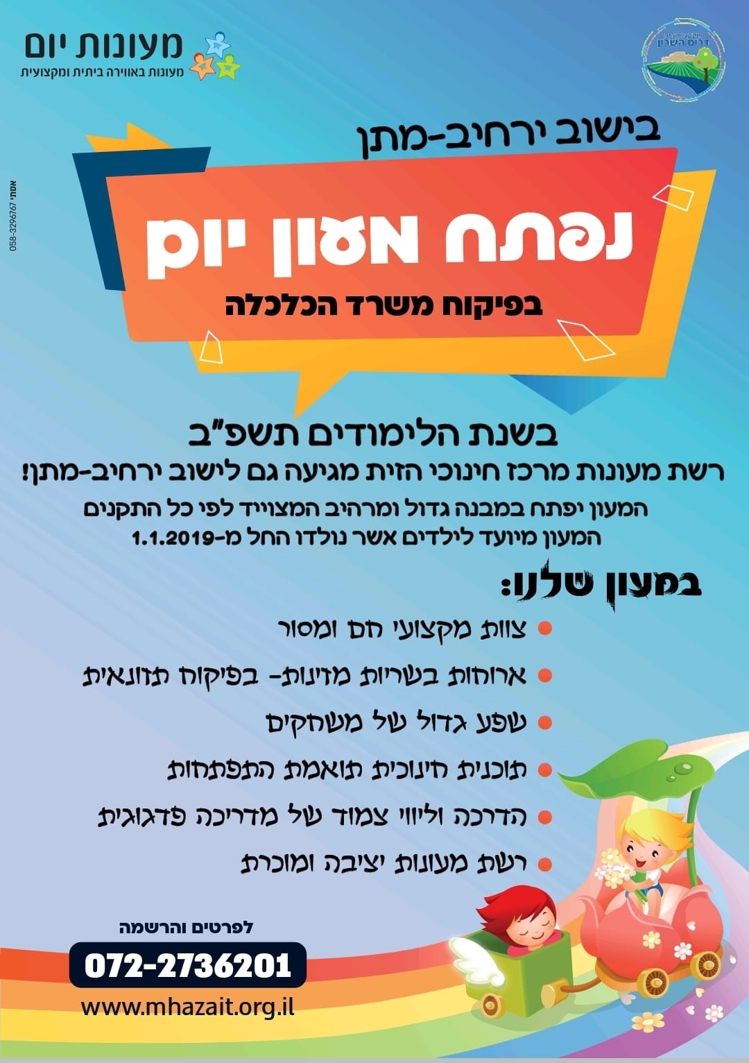 אגף החינוך שמח להכריז על פתיחת מעון יום חדש בירחיב.