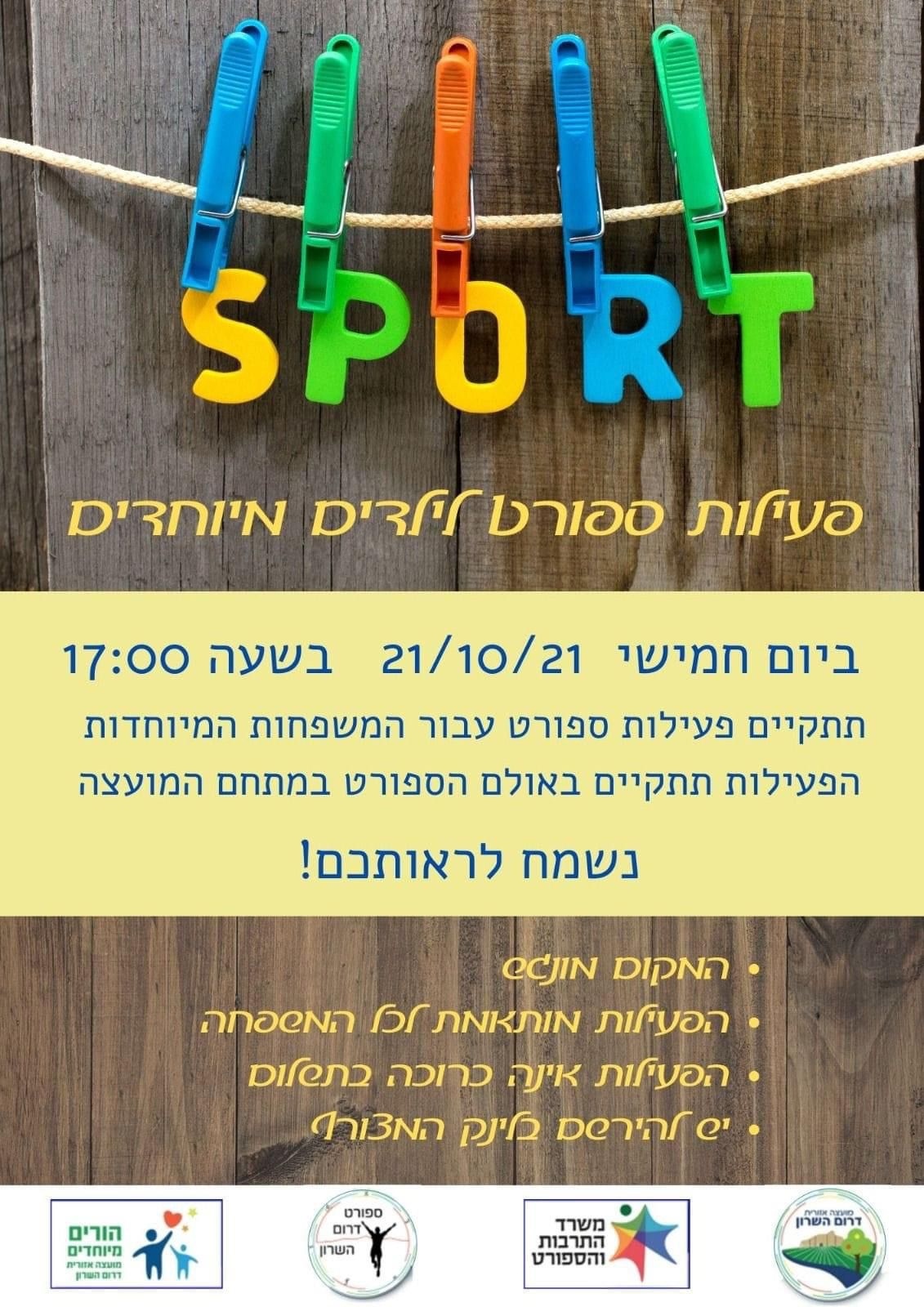 רשות הספורט ומנהיגות הורים לילדים עם צרכים מיוחדים המתגוררים במועצה, מזמינים אתכם לפעילות ספורט לילדים מיוחדים במתחם הנינג’ה במועצה.