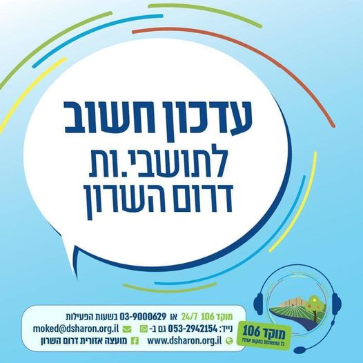 מוקד המועצה זמין עבורכם בטלפון: 03-9000629 או בווטסאפ: 053-2942154