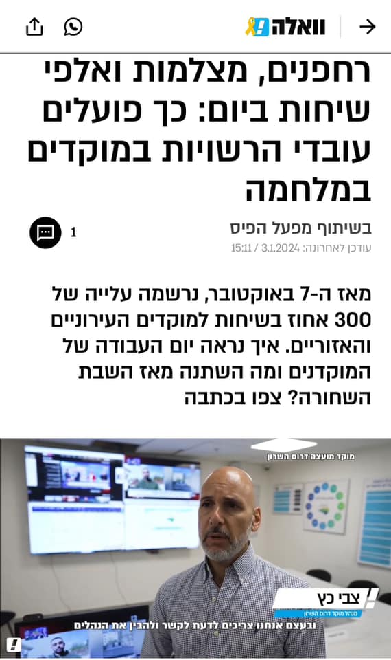 מוזמנים לצפות בכתבה על מוקד המועצה בתקופת המלחמה באתר וואלה!, לצד המוקד של שכנתנו עיריית כפ״ס.